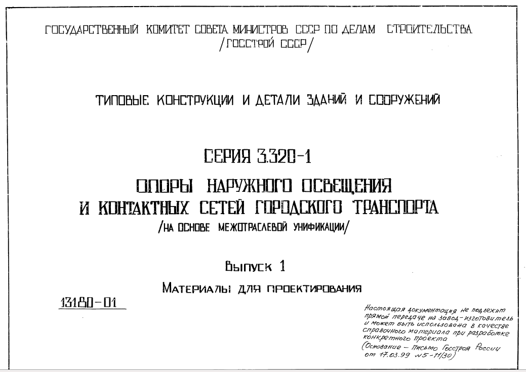 Серия 3.320-1. Опоры наружного освещения и контактных сетей городского транспорта (на основе межотраслевой унификации)