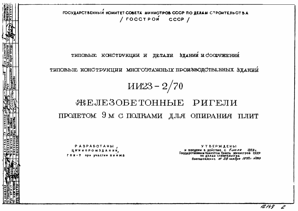 Серия ИИ 23-2/70. Железобетонные ригели пролетом 9м с полками для опирания плит