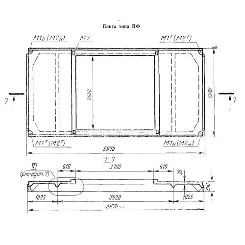Рассчитать стоимостьПФ 1 Плиты железобетонные ребристые (с проемом в полке плиты для зенитного фонаря) предварительно напряженные для покрытий производственных зданий ГОСТ 22701-77.