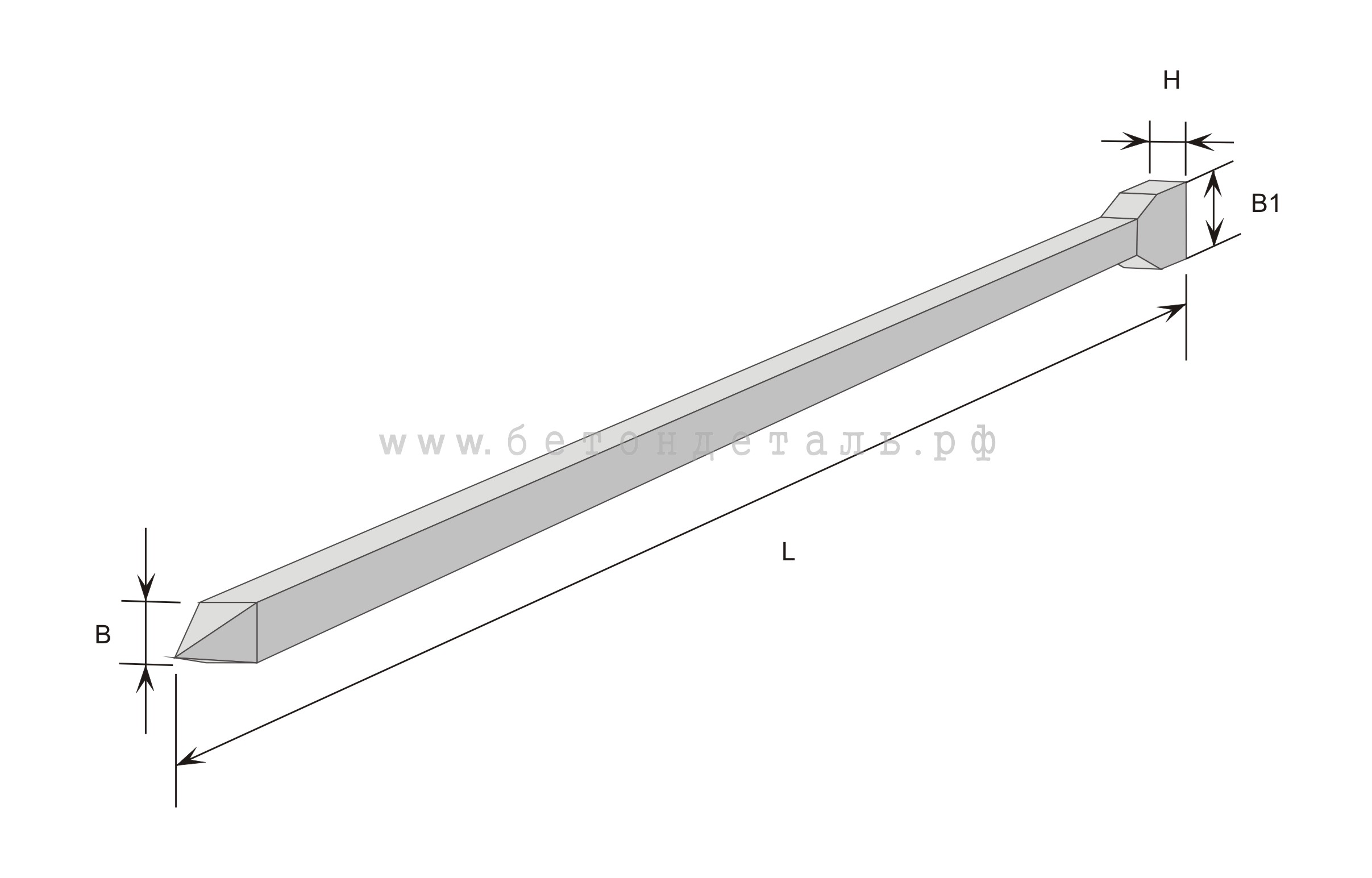 Свая-колонна СК 60-2-5 под параболические лотки - это железобетонное изделие прямоугольного сечения, одина конец которой заострен, а на другом конце расположен трапецевидный наголовник. Сваи-колонны заглубляются непосредственнно в грунт.