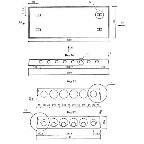 Плиты длиной 2980 мм и шириной 1190 мм с арматурой из стали классов  A-III  и Bp-I из тяжелого бетона.