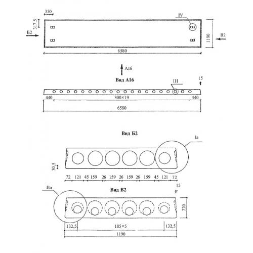 Плиты длиной 6580 мм и шириной 1190 мм с напрягаемой арматурой из стали классов  A-IIIв, A-IV, Ат-V , из тяжелого бетона.  Метод натяжения - электротермический.