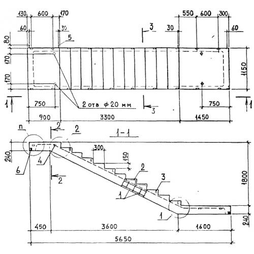 ЛМП 57.11.18 Лестничные марши ребристые с полуплощадками по серии 1.050.1-2.