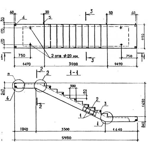 ЛМП 60.11.17 Лестничные марши ребристые с полуплощадками по серии 1.050.1-2.