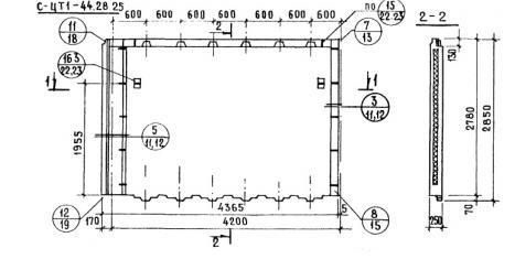 Рассчитать стоимостьПанели стеновые цокольные СЦТ1л-44.28.25 (Серия 1.117-12с).