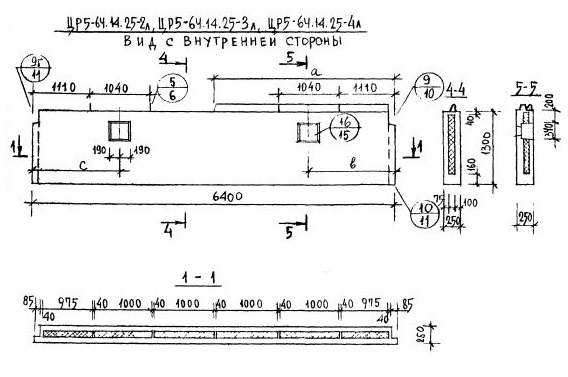Серия 1.117-9    Панели групп ЦР1, ЦР2, ЦР4, ЦР5  толщиной 250 мм.