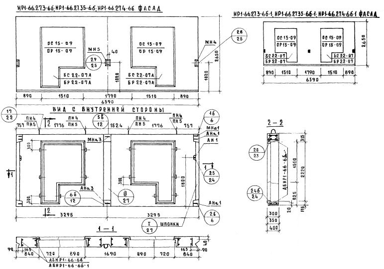 НР1-66.27.3-6б   Наружная стеновая панель рядовая по Серии 1.132-1.