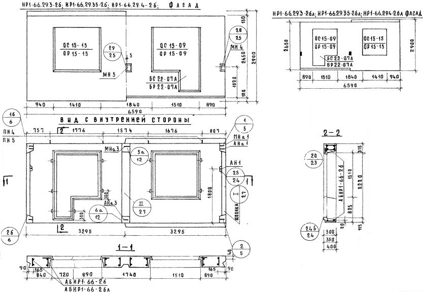 НР1-66.29.35-2б   Наружная стеновая панель рядовая по Серии 1.132-1.