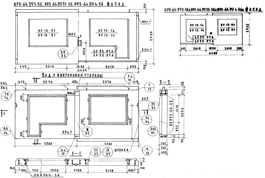 НР5-64.29.3-5бл   Наружная стеновая панель рядовая по Серии 1.132-1.