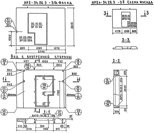 НР2-34.26.3-3бл    Наружная стеновая панель рядовая по Серии 1.132-2.