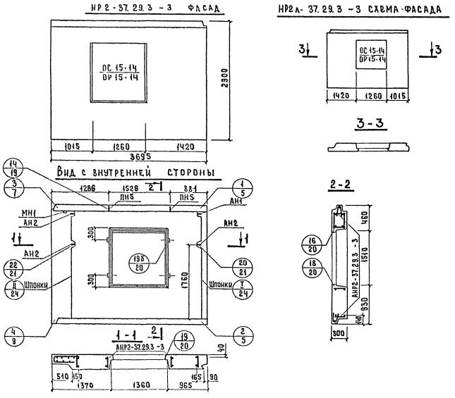 НР2-37.29.3-3    Наружная стеновая панель рядовая по Серии 1.132-2.
