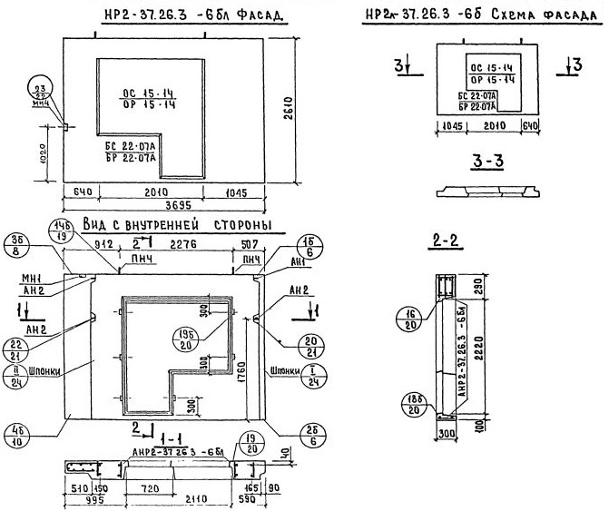 НР2л-37.26.3-6б Наружная стеновая панель рядовая по Серии 1.132-2.